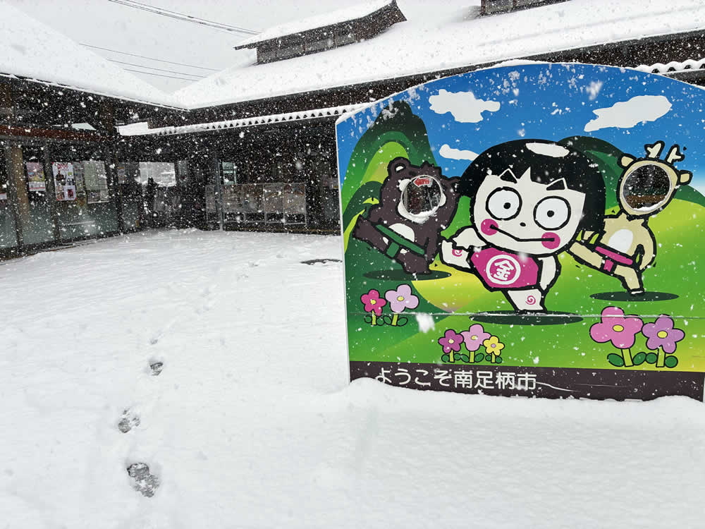 東名高速で一路小田原へ向かったものの、秦野中井ICを過ぎたあたりから雪が激しくなり、行程を一部変更することに。