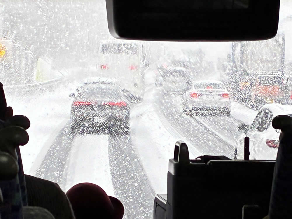 当初予定していた場所を観光することは叶いませんでしたが、車窓に広がる雪景色を眺めながらの、少しゆったりとしたバスの時間もまた心地よく、そんな"雪の日ならでは"の思い出に残るバス旅行となりました。