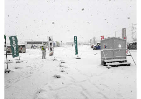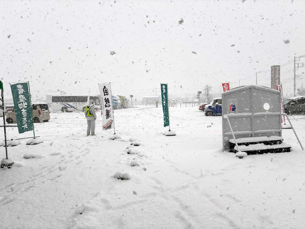 東名高速で一路小田原へ向かったものの、秦野中井ICを過ぎたあたりから雪が激しくなり、行程を一部変更することに。