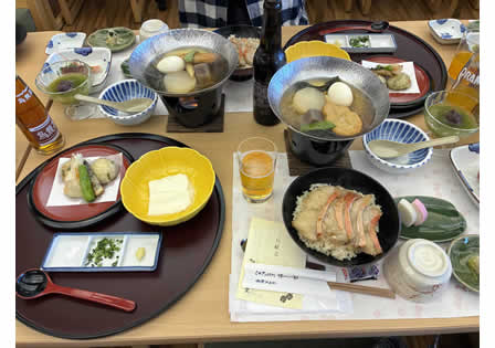 収穫した大量のミカンをバスに詰め込んで、鈴廣さんで豪勢なランチを頂きました。